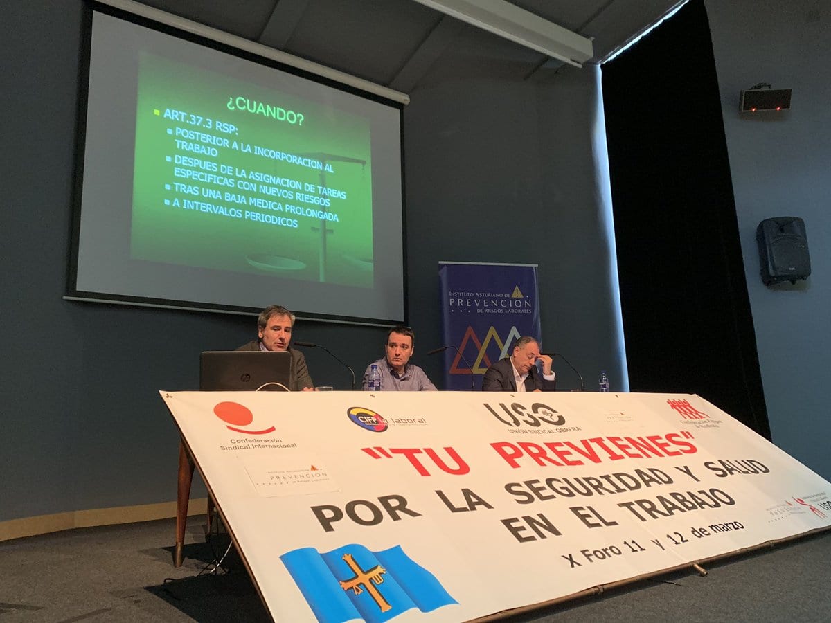 El Foro “Tú Previenes” ha celebrado su décimo aniversario este 2019, convirtiéndose, edición tras edición, en una cita obligada en el ámbito de la prevención. Este encuentro, centrado en la Prevención de Riesgos Laborales, que organiza USO Asturias, con la colaboración del Instituto Asturiano de Prevención de Riesgos Laborales y el Centro Integrado de Formación Profesional (CIFP), lleva diez años reuniendo a prevencionistas, inspectores de trabajo, asociaciones profesionales, servicios de prevención y mutuas para debatir durante dos días sobre PRL y salud laboral, con un público compuesto por sindicalistas y los alumnos del CIFP, futuros técnicos de prevención.