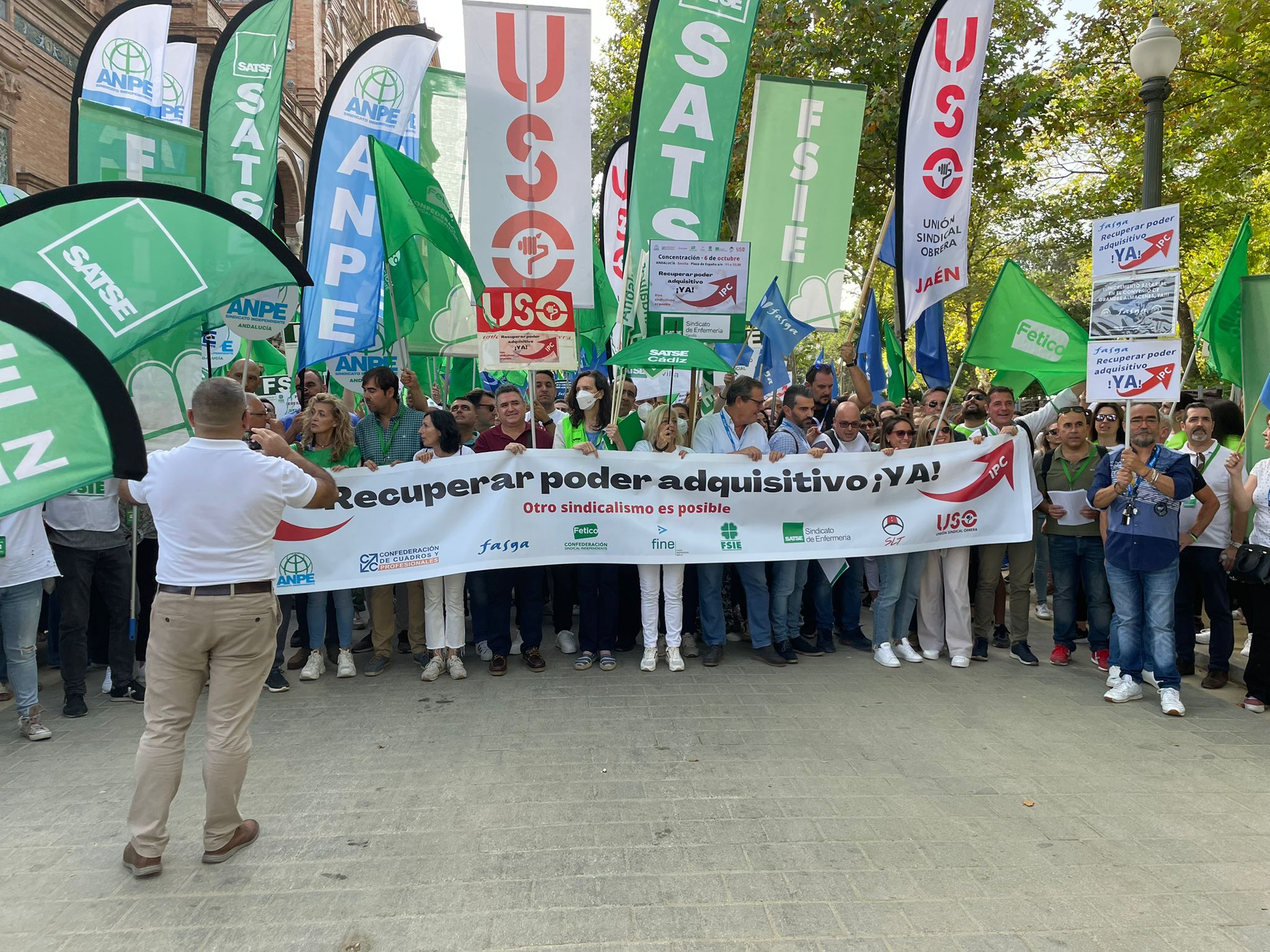 Los sindicatos independientes ANPE, CCP, FASGA, FETICO, FINE, FSIE, SATSE, SLT y USO, que representan a más de 500.000 trabajadores afiliados/as y cuentan con representatividad en múltiples sectores, como en educación, sanidad, comercio, agencias de viajes, transporte y sector financiero, en varios de los cuales son mayoritarios, han llevado su lema “Recuperar poder adquisitivo YA” hasta el Ministerio de Trabajo, en Madrid, y las delegaciones del Gobierno de 17 ciudades españolas más, para reclamar una actuación urgente por parte del Ejecutivo.