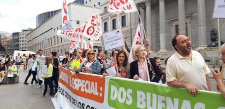 Con la concentración de hoy frente al Congreso, FEUSO ha mostrado su desacuerdo ante la propuesta de una sola modalidad educativa para este alumnado, y la defensa de la compatibilidad de las dos modalidades: la Educación Inclusiva y la Educación Especial.