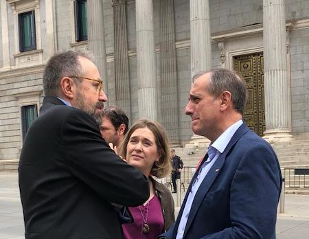 El secretario general de la Federación de Enseñanza (FEUSO), Antonio Amate, junto al secretario general de FEUSO-Madrid, Juan Torija, han hecho entrega hoy en el Congreso de los Diputados de las cerca de 300.000 firmas de apoyo a los centros de Educación Especial, ante la “declaración de intenciones” que supone el Proyecto de Ley de Educación aprobado por el Gobierno el pasado 12 de febrero, donde se propone como criterio general que todo el alumnado con necesidades educativas especiales sea escolarizado en centros ordinarios.