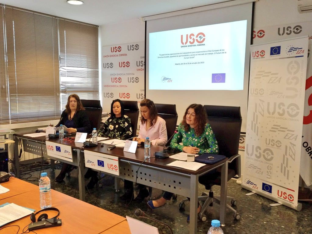 La segunda jornada del Seminario EZA, que ha tenido como tema principal a la mujer, ha estado  dividida en tres módulos. El primero de ellos, bajo el título “La apuesta de las organizaciones sindicales europeas por igualdad de oportunidades y la implicación, integración y participación de las mujeres en ellas”, ha contado con Karmen Sok, Veselina Starcheva y Dulce María Moreno como ponentes.