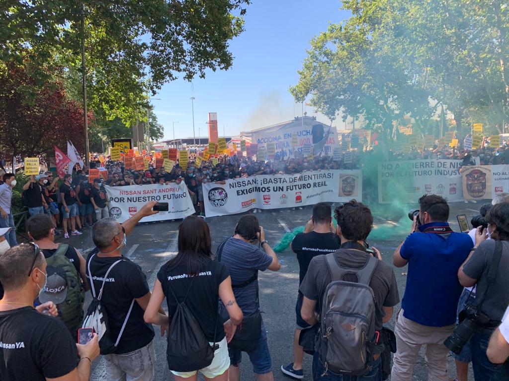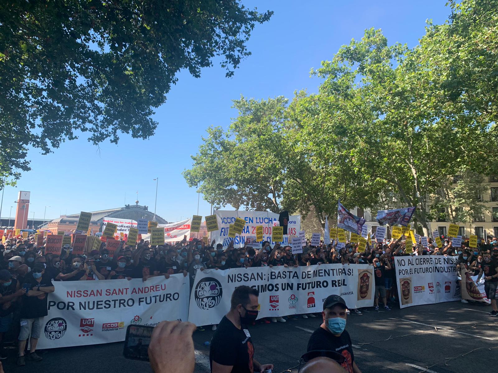 Más de 2.000 trabajadores de Nissan, reforzados por compañeros de USO y otros sindicatos en Madrid, han marchado desde la glorieta de Carlos V hasta el Congreso de los Diputados. Allí, a gritos de “Nissan no se cierra”, “Futuro para Nissan ya” y otras consignas, le han querido recordar al Gobierno y a los grupos parlamentarios que deben implicarse para garantizar los empleos de 2.525 trabajadores directos en los centros de trabajo de Barcelona y más de 25.000 puestos en peligro en total.