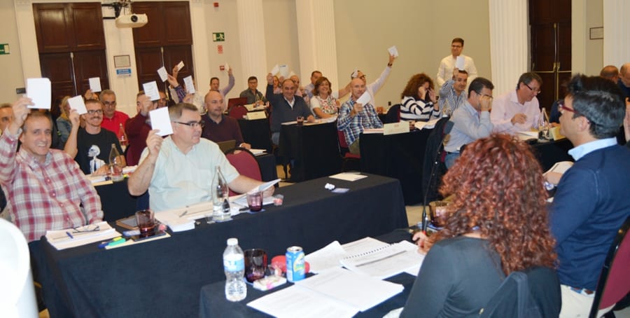 Representantes de las Uniones y Federaciones, junto con los componentes de la Comisión de Ponencias analizan y debaten las enmiendas presentadas por las organizaciones a los Estatutos, normas que rigen los derechos y deberes de los afiliados y afiliadas así como los requisitos para adquirir o perder dicha condición y regulan el funcionamiento de los órganos confederales del sindicato, vinculando sus acuerdos a la estructura y órganos de las Uniones Regionales o Nacionales y las Federaciones Profesionales Estatales.