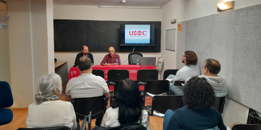 USOC ha celebrado una mesa redonda, moderada por el secretario de Acción Sindical, Ángel Garrido, en la que han participado delegados y delegadas de sectores con gran incidencia de violencia laboral, como el educativo, el sanitario, el trasporte sanitario y la seguridad privada, que expusieron sus experiencias.