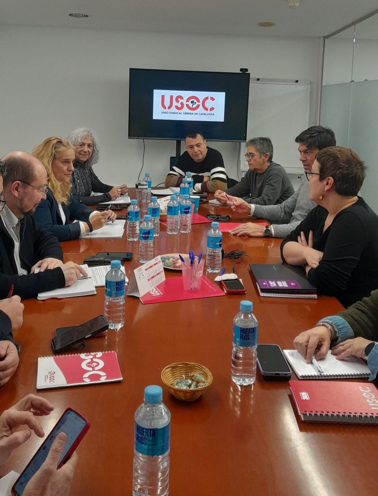El secretario general de USO ha mantenido hoy una reunión con la Comisión Ejecutiva Nacional de la USOC, acompañado de Sara García, secretaria de Acción Sindical y Empleo. En ella, han hablado principalmente sobre la preparación del 13 Congreso Confederal, al cual la USO de Cataluña llevará una amplia delegación, fruto de su peso afiliativo y representativo. De hecho, USOC mantiene desde hace años un crecimiento sostenido y constante y, a pesar de la gran competencia sindical en Cataluña, estamos instalados en el entorno del 5 % de representatividad.