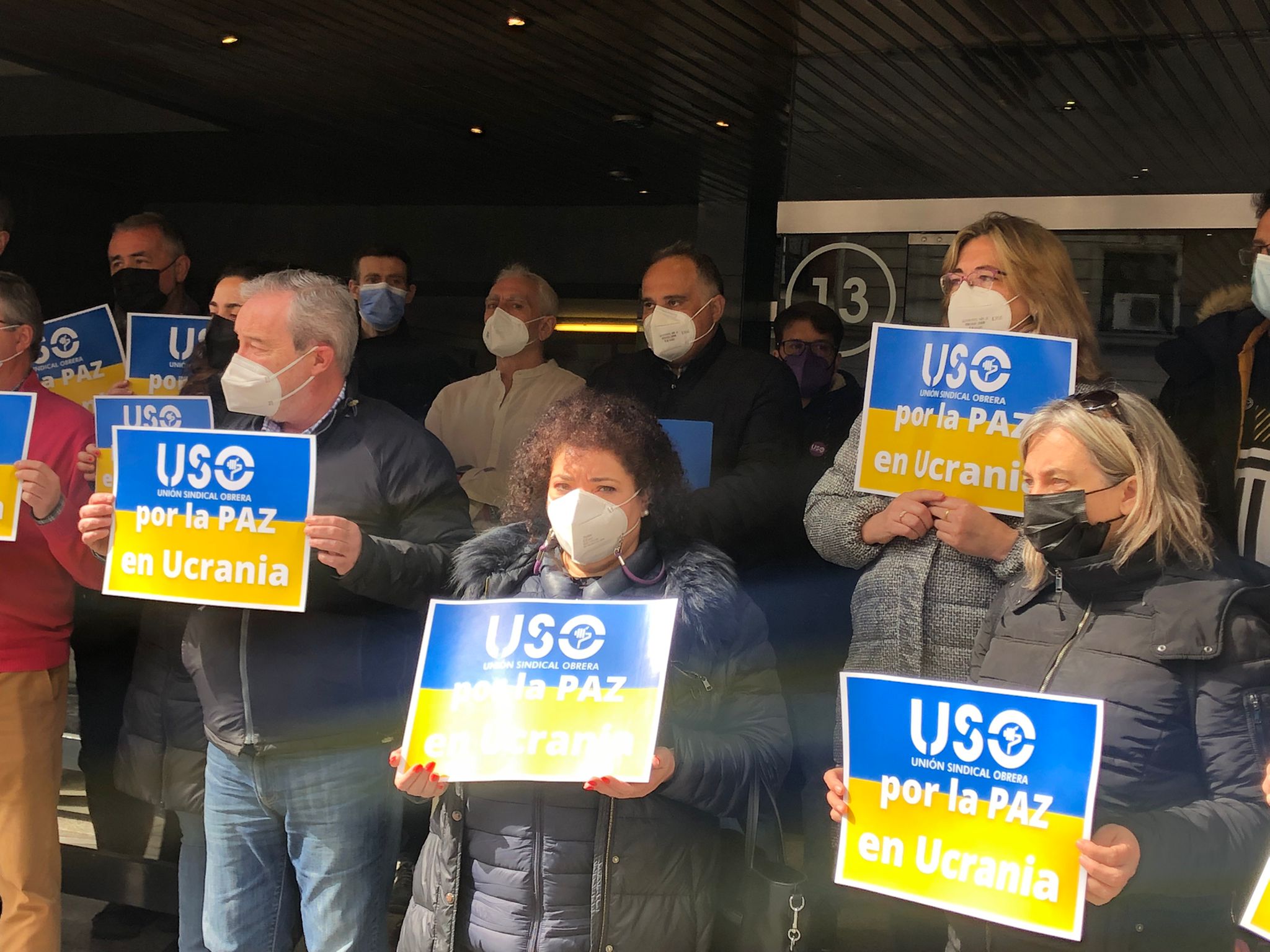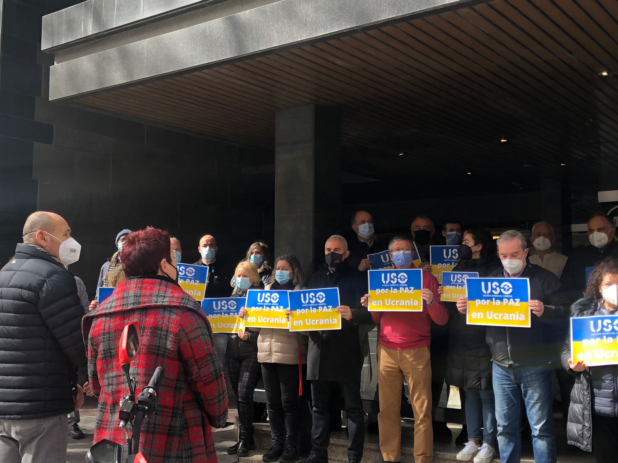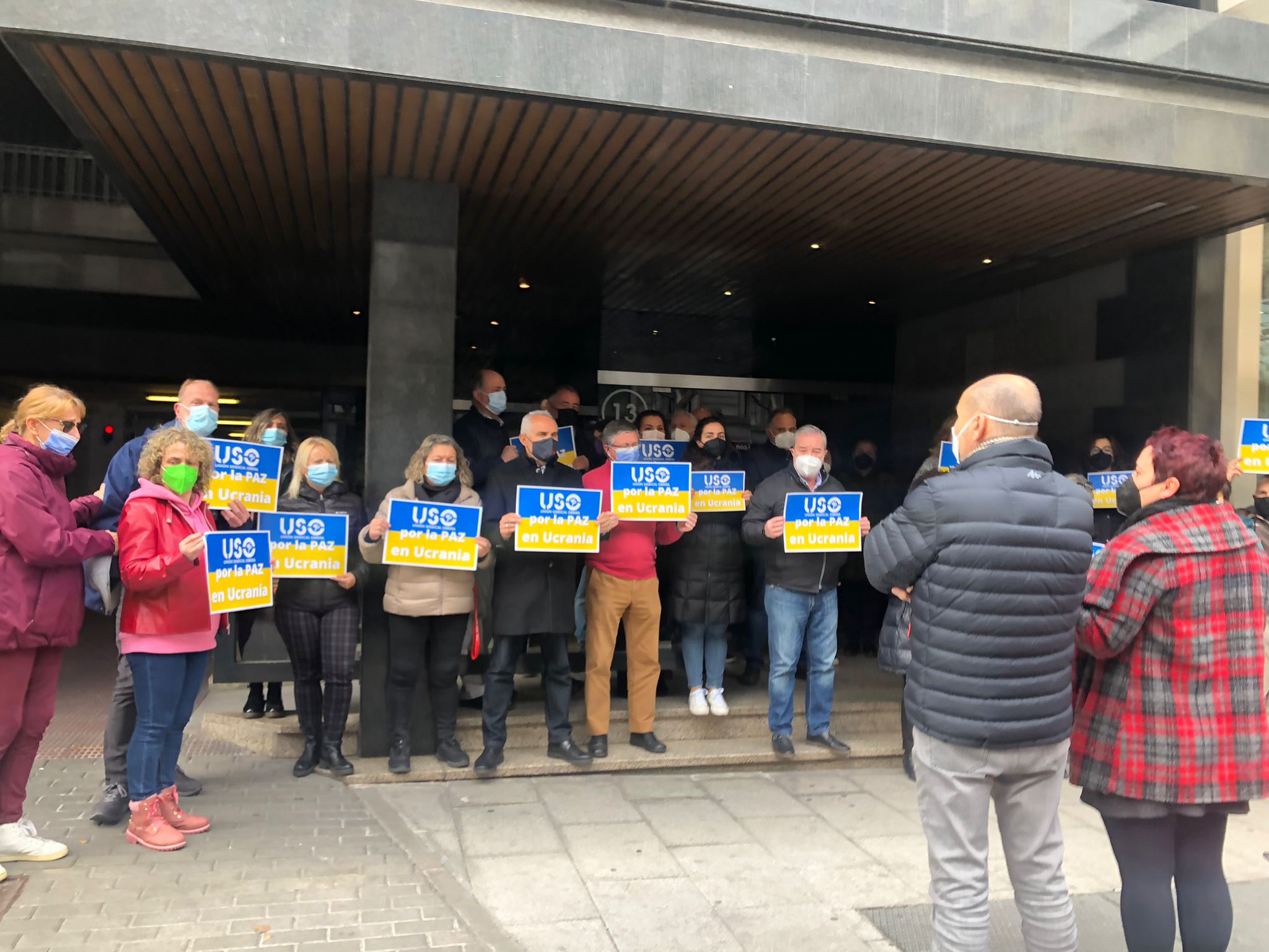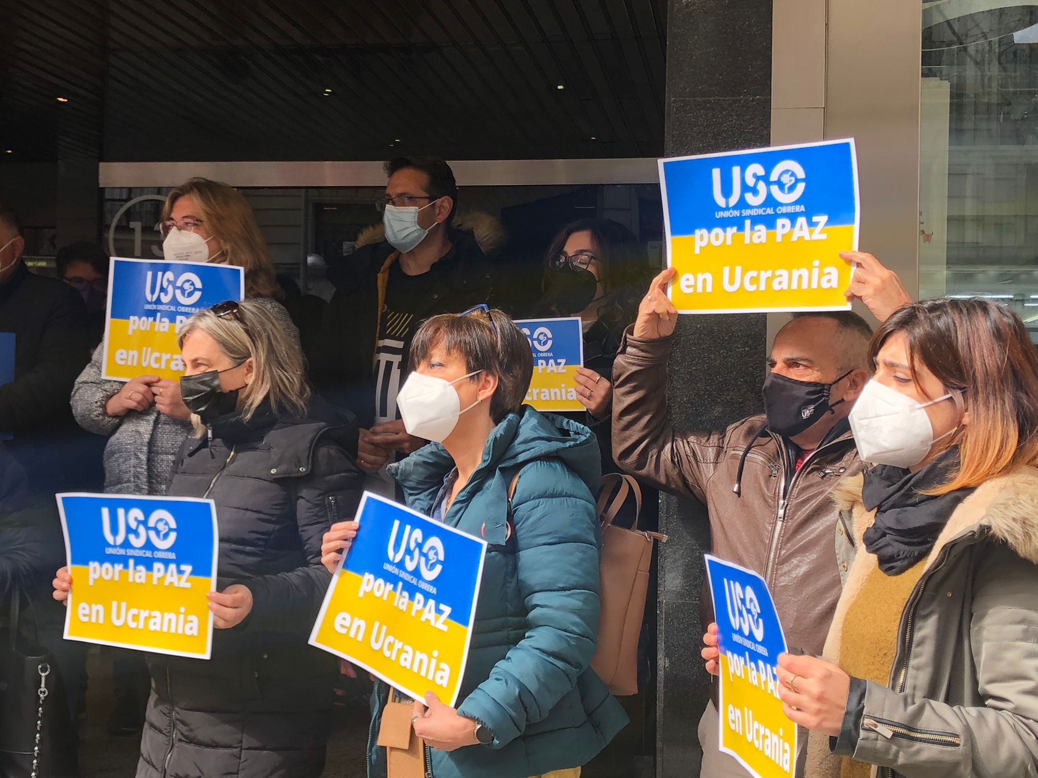 USO ha convocado y celebrado concentraciones silenciosas, de 5 minutos, a las puertas de los centros de trabajo en toda España haciendo un llamamiento por la paz en Ucrania y reclamando el alto el fuego y la inmediata retirada de las tropas rusas del país.
