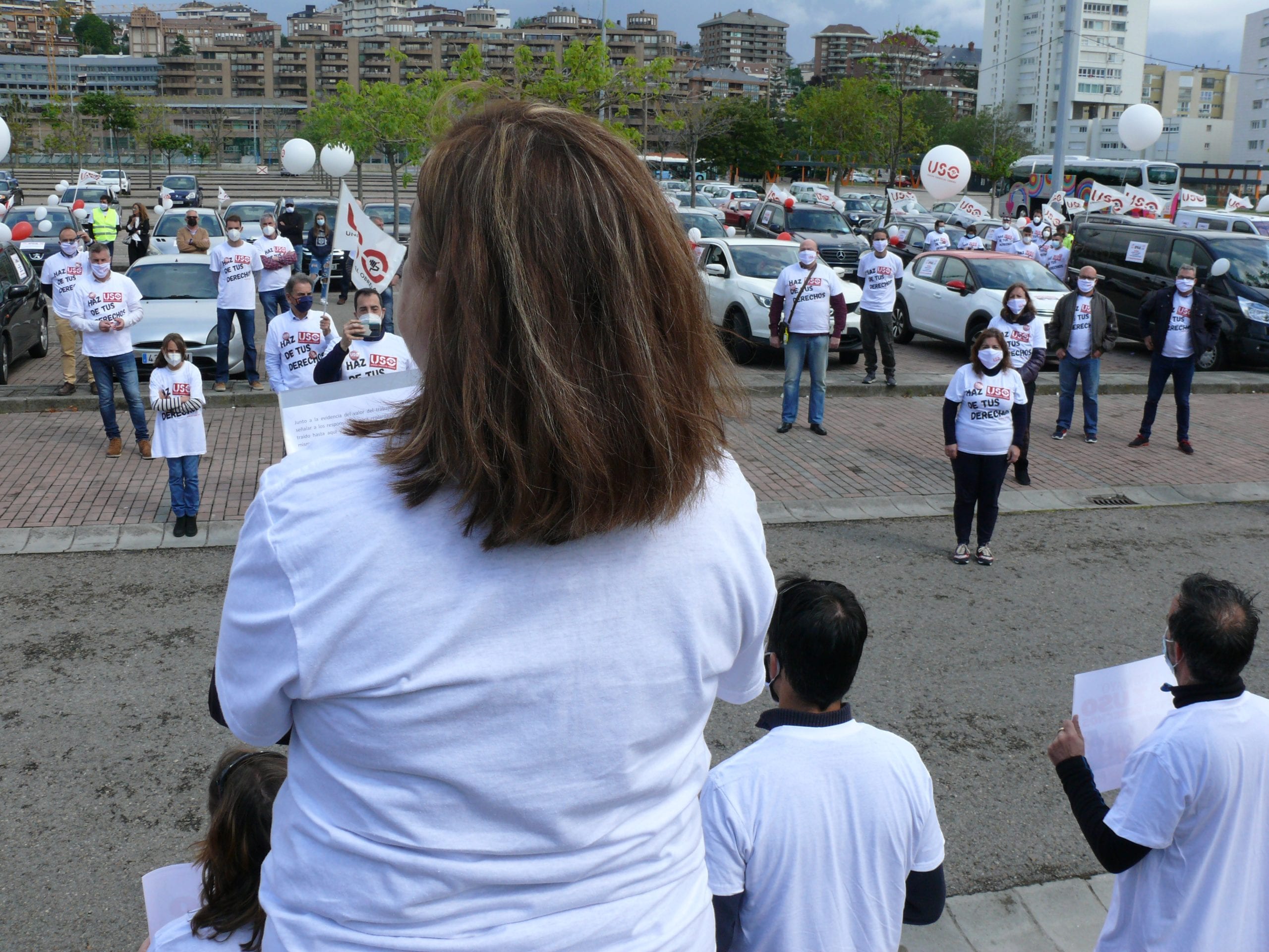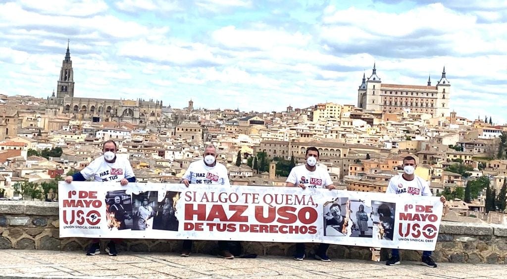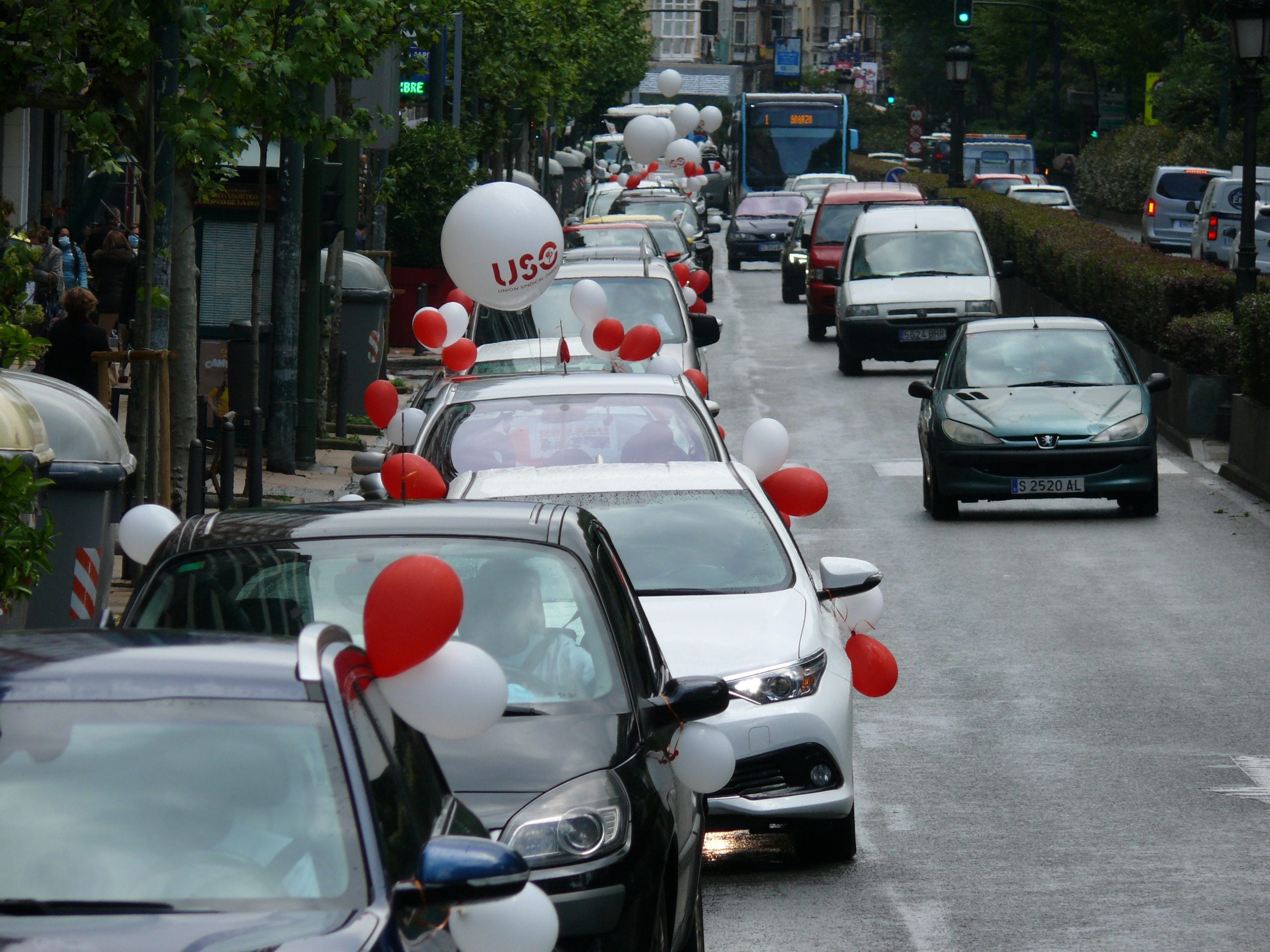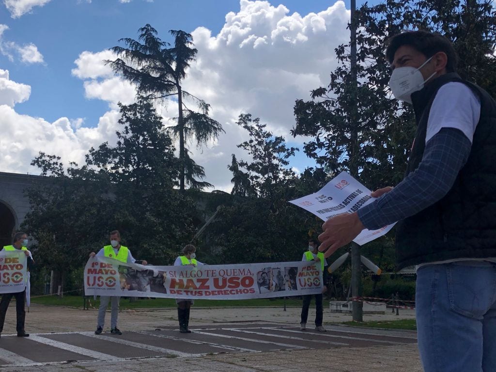 USO ha celebrado concentraciones reducidas y caravanas de vehículos este 1 de Mayo en una quincena de ciudades, entre ellas Madrid, Sevilla, Oviedo, Palma de Mallorca, Santander, Logroño, Bilbao, Barcelona y Valencia