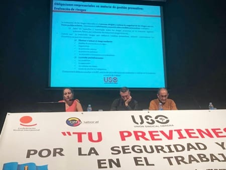 Tras el descanso, Sara García Cabrero, responsable del Gabinete de Salud Laboral de USO, habló sobre el impacto de la temporalidad y la subcontratación en la siniestralidad laboral, tratando así mismo el cumplimiento de las obligaciones empresariales en prevención de riesgos laborales, centrándose especialmente en aquellos casos en los que intervienen las ETT, y en los que se da una concurrencia empresarial en un centro de trabajo.
